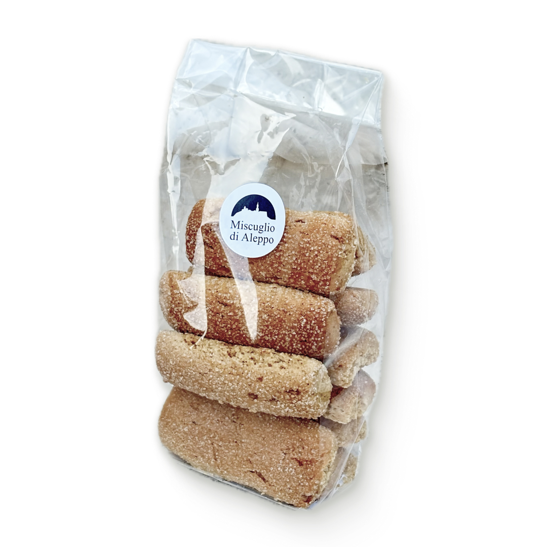 Questi biscotti, pensati per essere inzuppati in latte o bevande di qualsiasi tipo, sono prodotti nel nostro forno di Pedaso con la nostra farina bio di miscuglio di Aleppo, macinata a pietra.