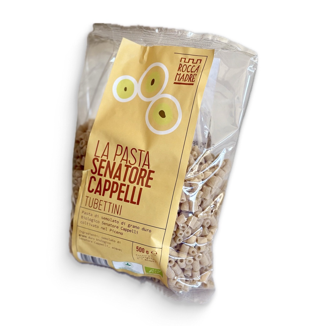 I Tubettini biologici di Roccamadre sono una pasta artigianale prodotta con grano duro varietà Senatore Cappelli, coltivato in Italia secondo metodi biologici. Questo grano antico è noto per il suo profilo nutrizionale ricco e la sua elevata digeribilità.